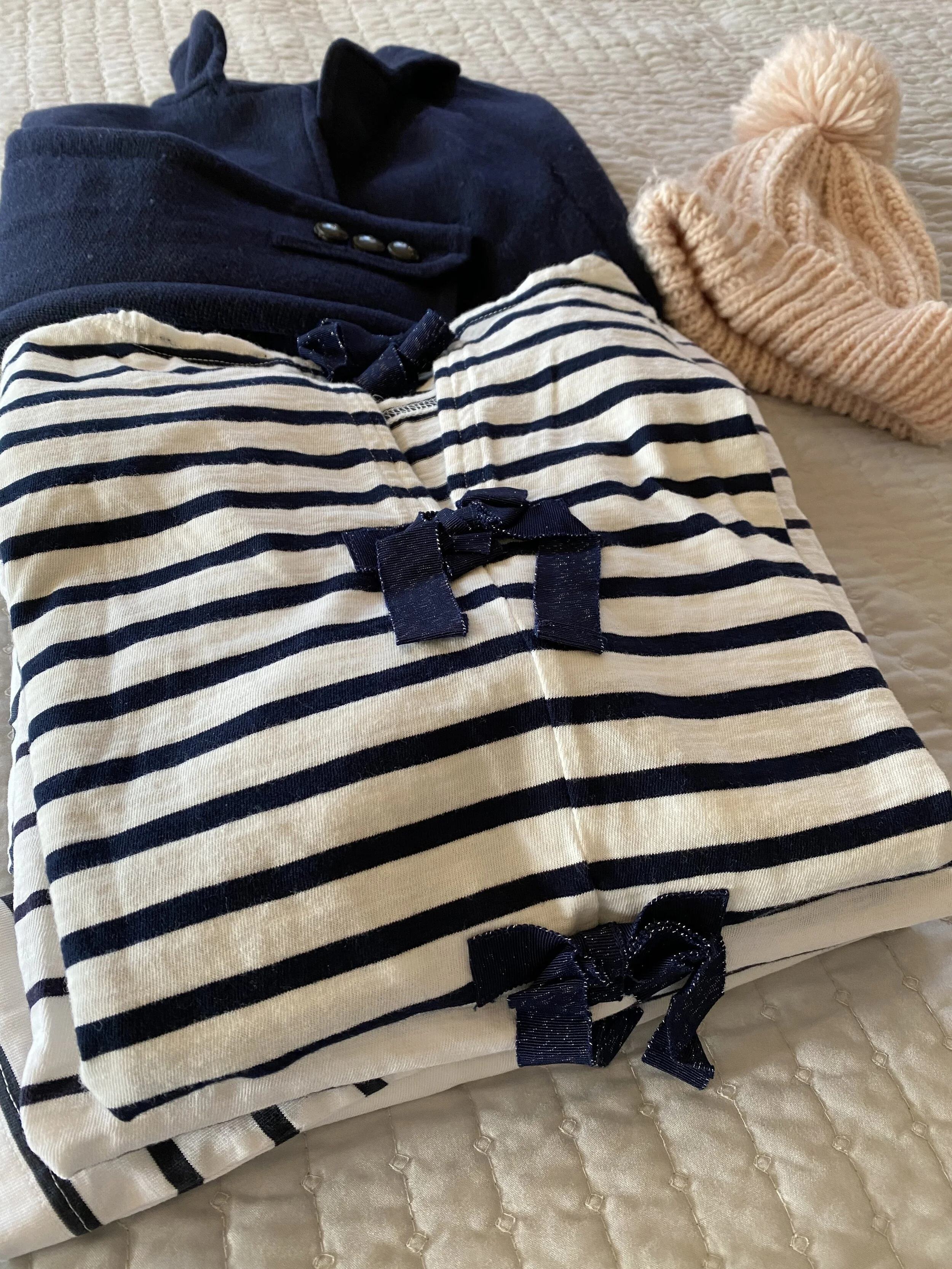 The Breton Stripe or Mariniere has had a long history and one that roots itself from the French Navy uniform. The beauty of this stripe is that it can be worn so many different ways and with many trends applied. One of these stripe knits I purchased over twenty years ago on a trip to Paris. As it is a classic, maybe even a staple, I still love it and bonus it has become sooo soft. I have purchased this stripe or a version of at many price points from Old Navy to JCREW to Petit Bateau, etc.